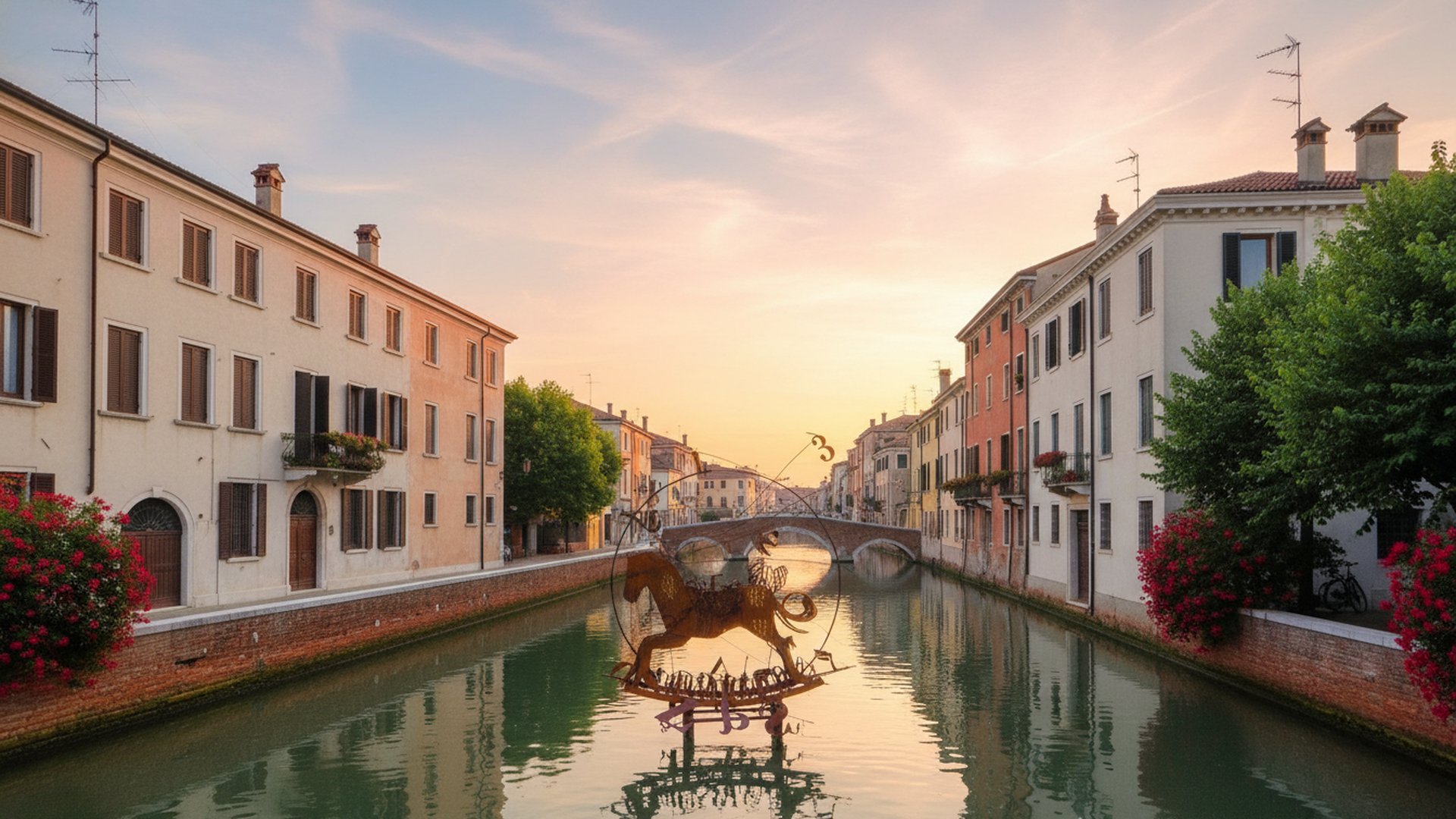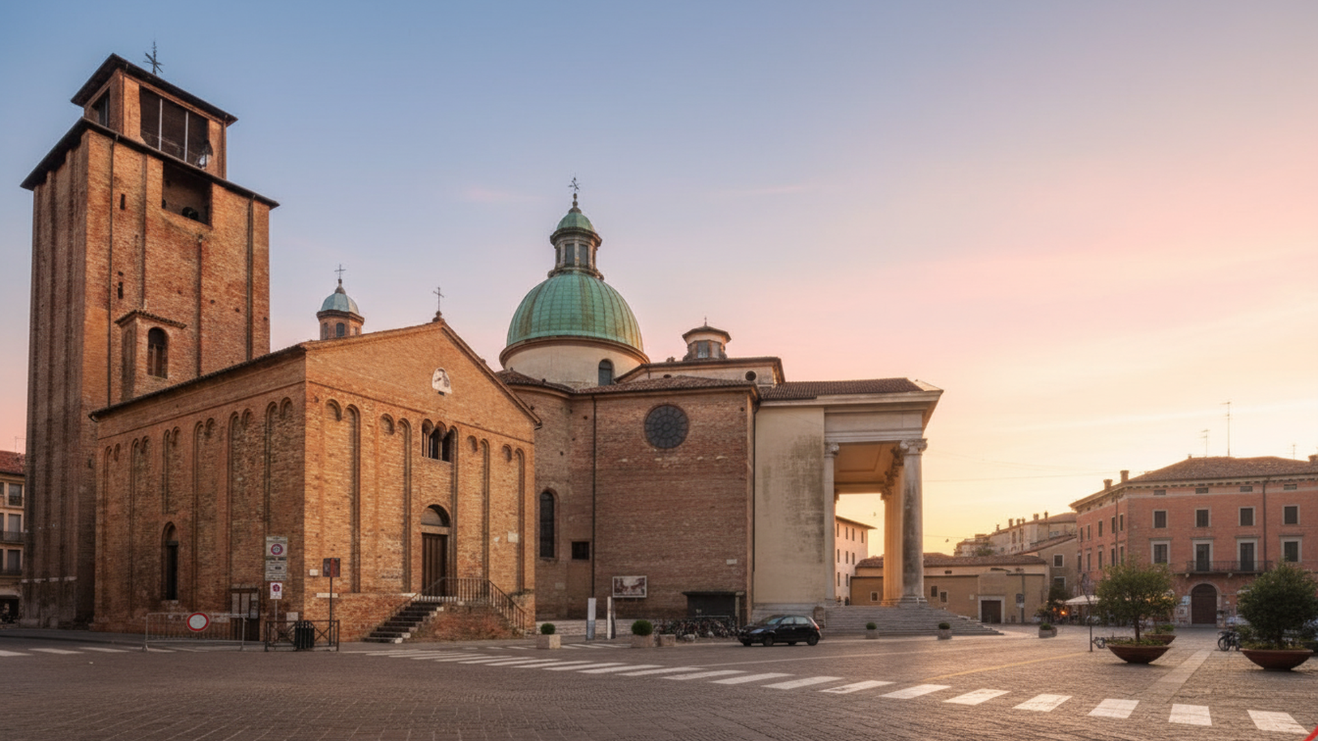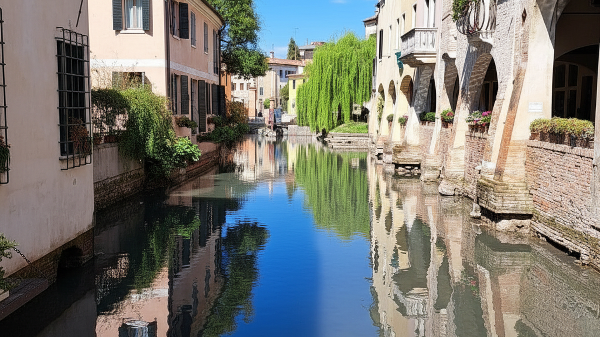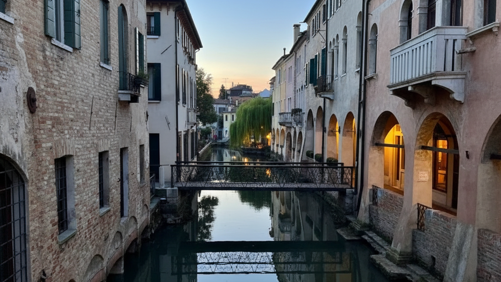 La piazza principale di Treviso, circondata da edifici storici e caffè, cuore pulsante della vita cittadina.