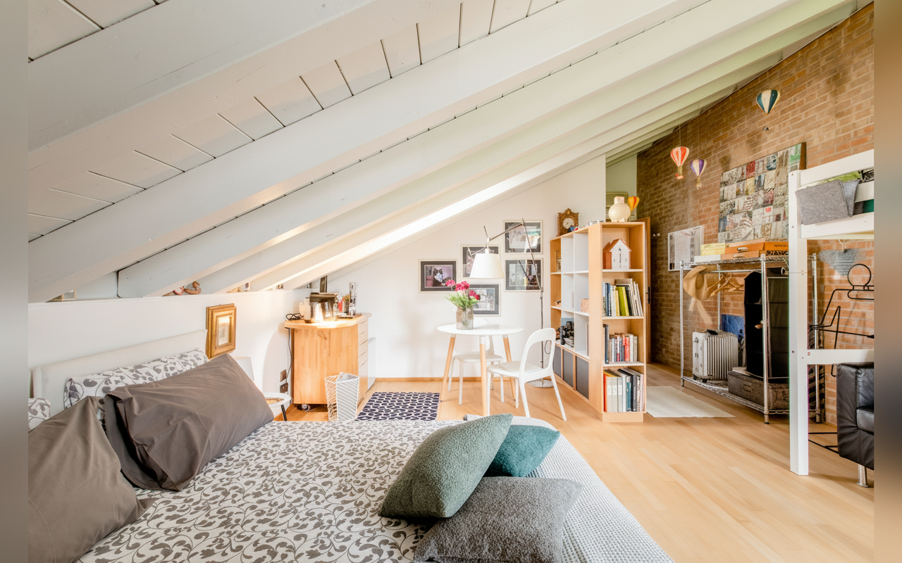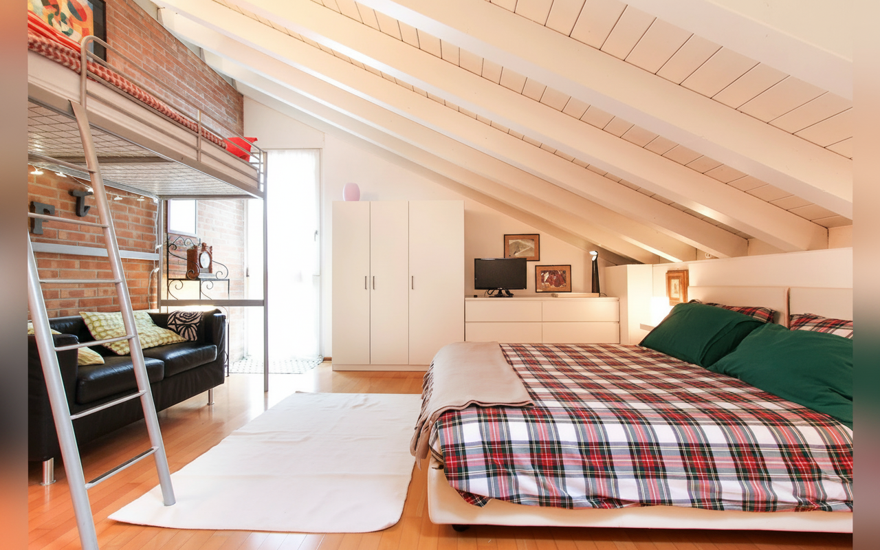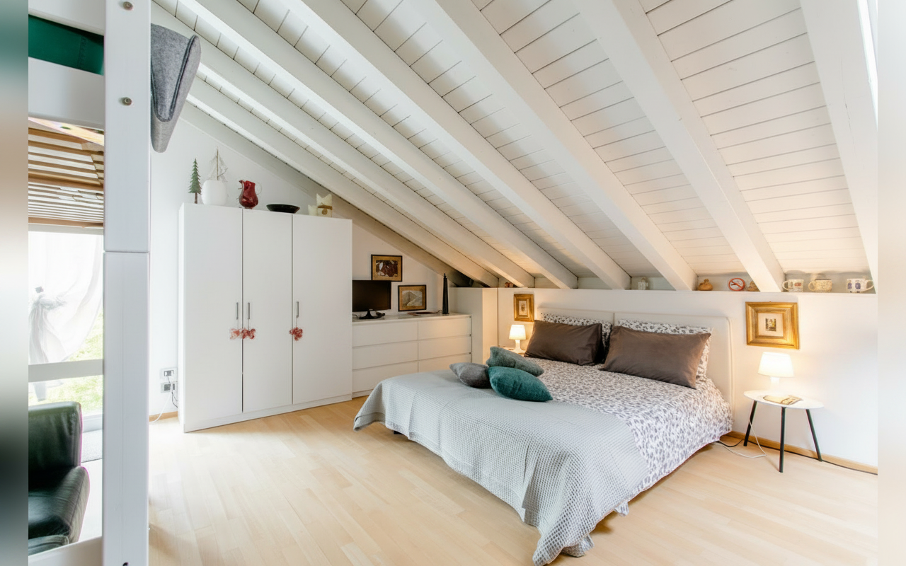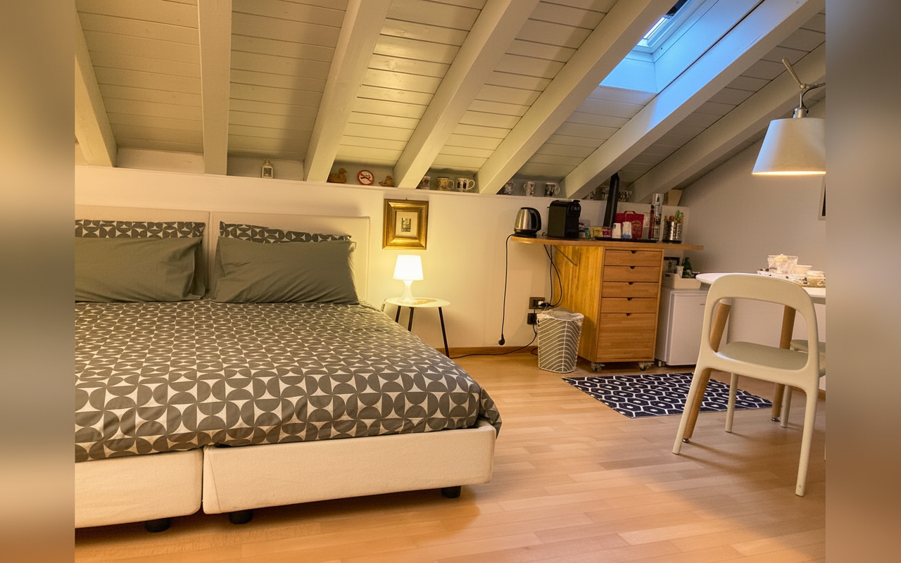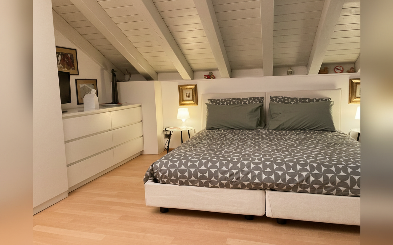 La mansarda può ospitare fino a 3 persone ed è ideale per coppie o piccoli gruppi.