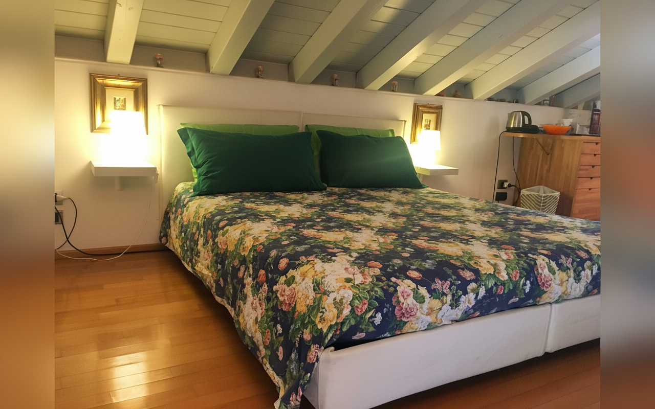 Situata a soli 5 minuti a piedi dal centro storico di Treviso, La Mansarda di Margherita è un monolocale accogliente e luminoso, ideale per coppie o piccoli gruppi fino a 3 persone. Arredata con travi in legno bianche e mattoni a vista, la mansarda offre un ambiente intimo e rilassante. Dispone di un letto matrimoniale, un letto singolo, un bagno privato e una zona relax con divano e TV. Gli ospiti possono usufruire di una veranda al piano terra per la colazione e di un giardino privato. La posizione strategica permette di raggiungere facilmente Venezia in treno o auto in soli 20 minuti.